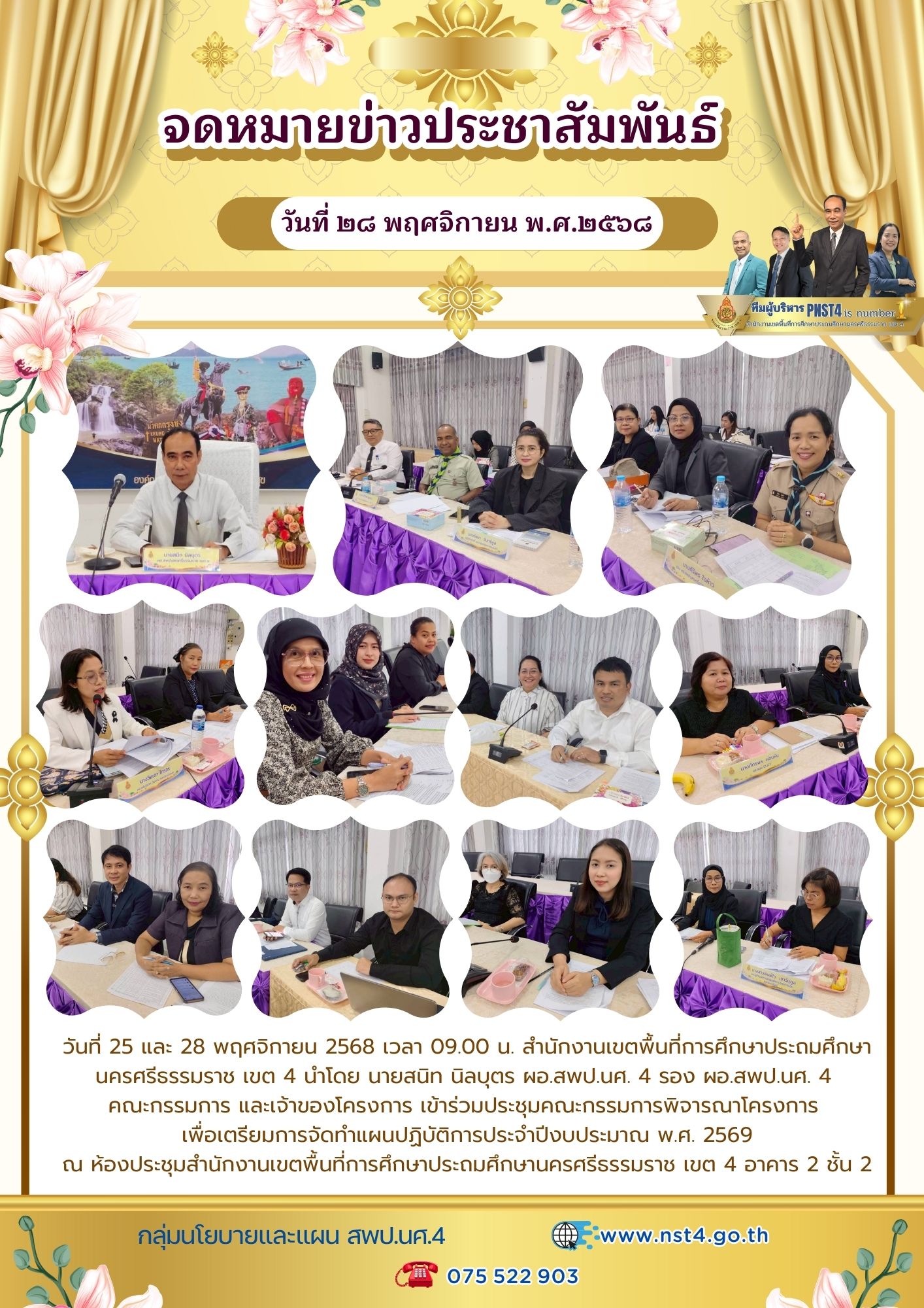 ประชุมคณะกรรมการรับนักเรียน ของสำนักงานเขตพื้นที่การศึกษาประถมศึกษานครศรีธรรมราช เขต 4