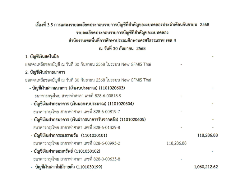 รายงานการเงินประจำเดือน กันยายน 2568