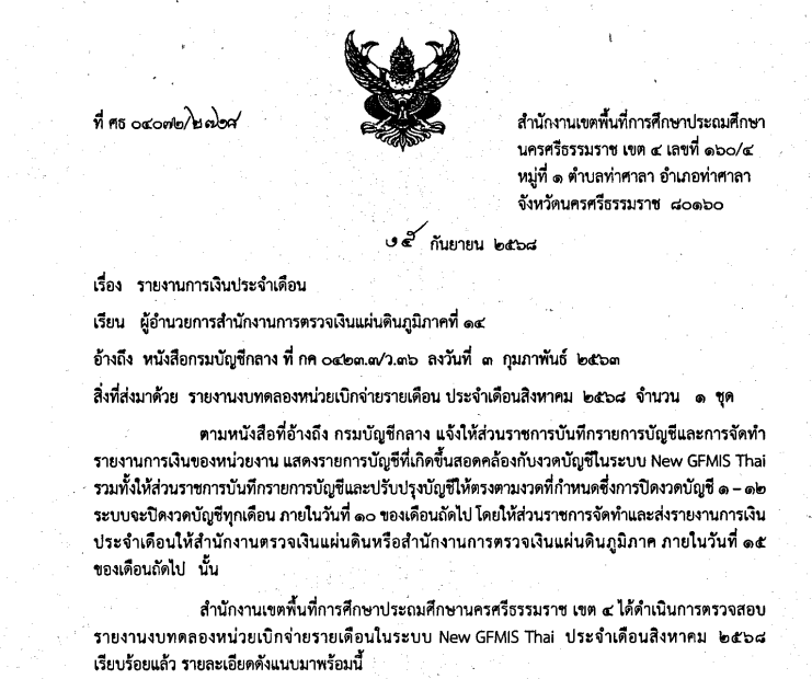 รายงานการเงินประจำเดือน สิงหาคม 2568