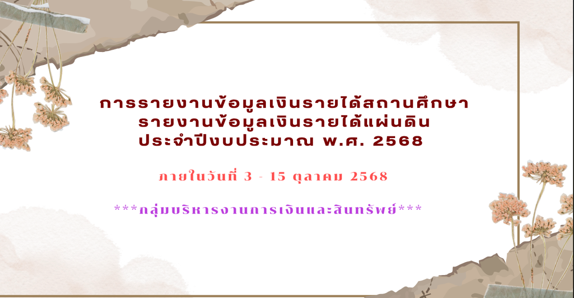 การรายงานข้อมูลเงินรายได้สถานศึกษา และการรายงานข้อมูลเงินรายได้แผ่นดิน ประจำปีงบประมาณ พ.ศ. 2568