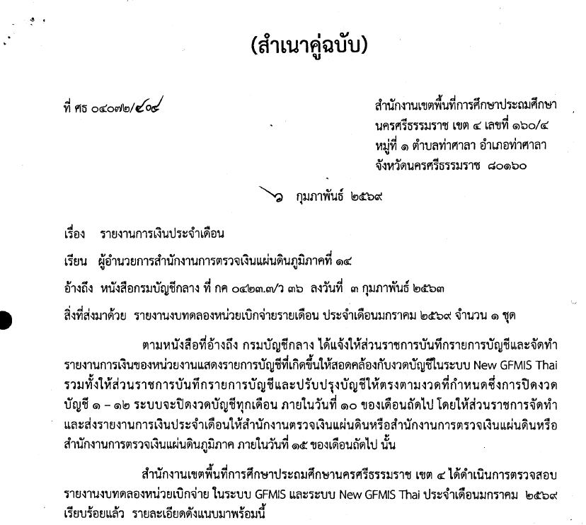 รายงานการเงิน ประจำเดือนมกราคม 2569